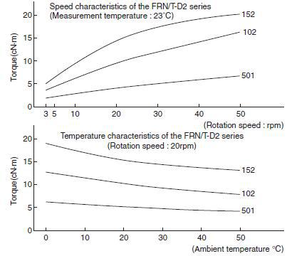 Damperand rotary #39; s tork berbeza-beza mengikut kelajuan putaran. Secara umum, seperti yang ditunjukkan dalam graf di sebelah kanan, tork yang meningkatkan sebagai kenaikan kelajuan putaran, dan tork yang mengurangkan sebagai penurunan kelajuan putaran. Di samping itu, Sila ambil perhatian bahawa tork permulaan yang sedikit berbeza daripada tork yang diberi penarafan.